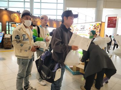 広島空港で、朝食のお弁当を受け取ります🥪